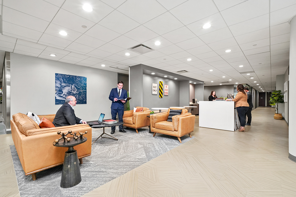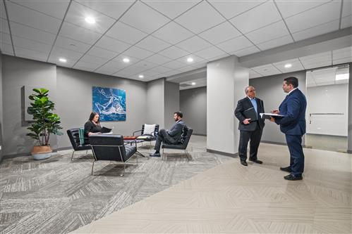 Private reception area, 2 interior offices, 1 Window office, break area, and sink. Includes shared conference rooms, huddle rooms, lounge, coffee bar, and Wi-Fi.