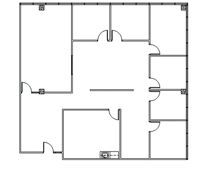 Glass Double-door entry, Reception area, 4 Window Offices, 1 Interior Office, 1 Conference Room, 1 Bullpen, Break Area