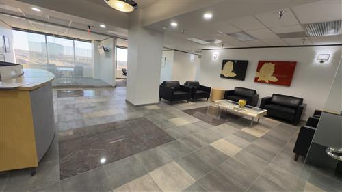 Interior office includes shared waiting areas, conference rooms, huddle rooms, lounge, coffee bar, and WiFi. 1 Glass Sidelight, Corner Location, WORKSTYLE