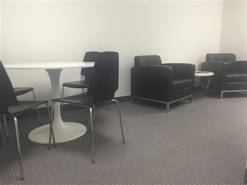 Fully furnished & decorated interior office. Includes shared waiting areas, conference rooms, huddle rooms, lounge, coffee bar, and WiFi. 1 Sidelight, WORKSTYLE