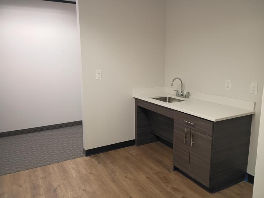 1 Large Window Office/Open Area with Glass Entry with a Sink.