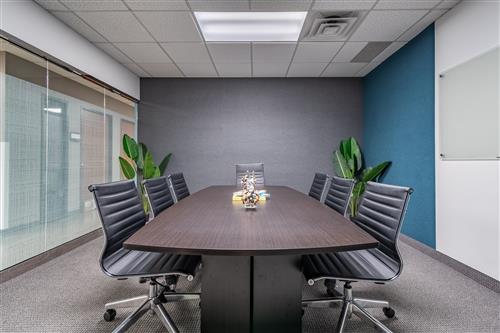 Interior Office with Sidelight. Includes shared waiting areas, conference rooms, huddle rooms, lounge, coffee bar, and WiFi.