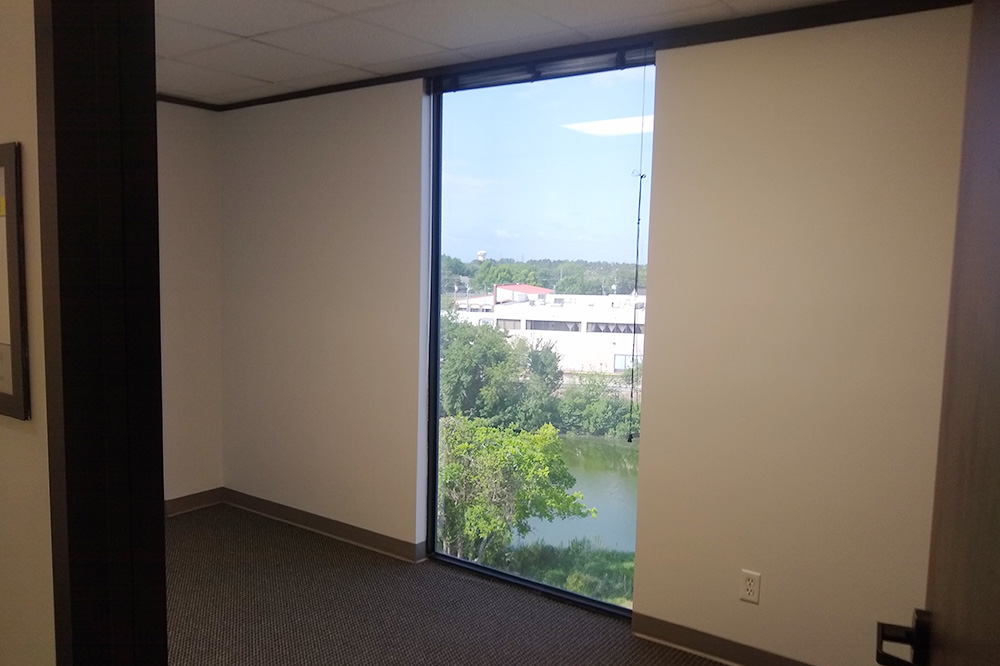 Reception, 2 atrium view offices, 1 Interior Office, and storage closet.