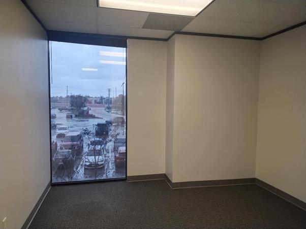 Reception w/ window, 1 corner window office, 3 window offices, large conference room, 1 interior office, & breakroom