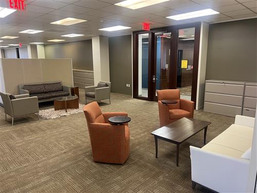 Reception Area, 15 Window Offices, 23 Interior Offices, 1 Conference Room, Open Area, Corner Location, huddle rooms, lounge, coffee bar, Mail Room and WiFi.