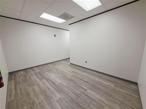 Reception with wood floors, 2 window offices, 3 interior offices, breakroom w/ sink & storage closet