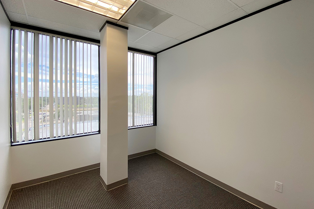 Reception w/ window, 1 corner window office, 3 window offices, large conference room, 1 interior office, & breakroom