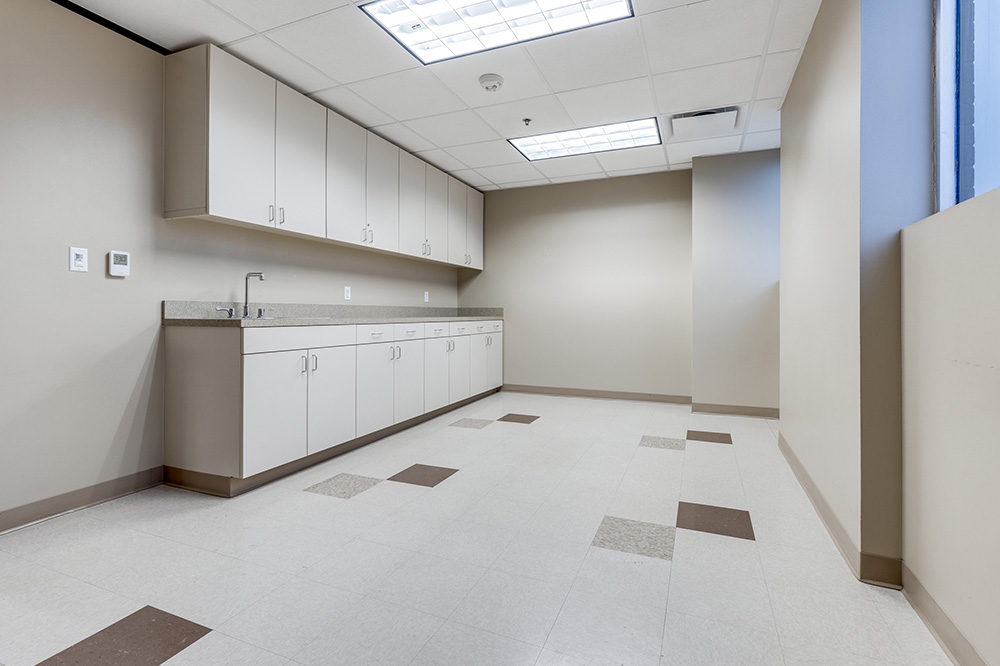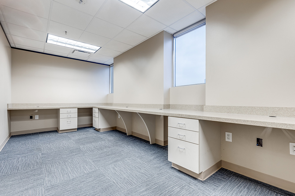 Reception, Waiting Area, 2 Work Areas, 14 Window Offices, 10 Interior Offices, 1 Closet, Break area, Multiple Exam rooms with sinks & Private Restroom