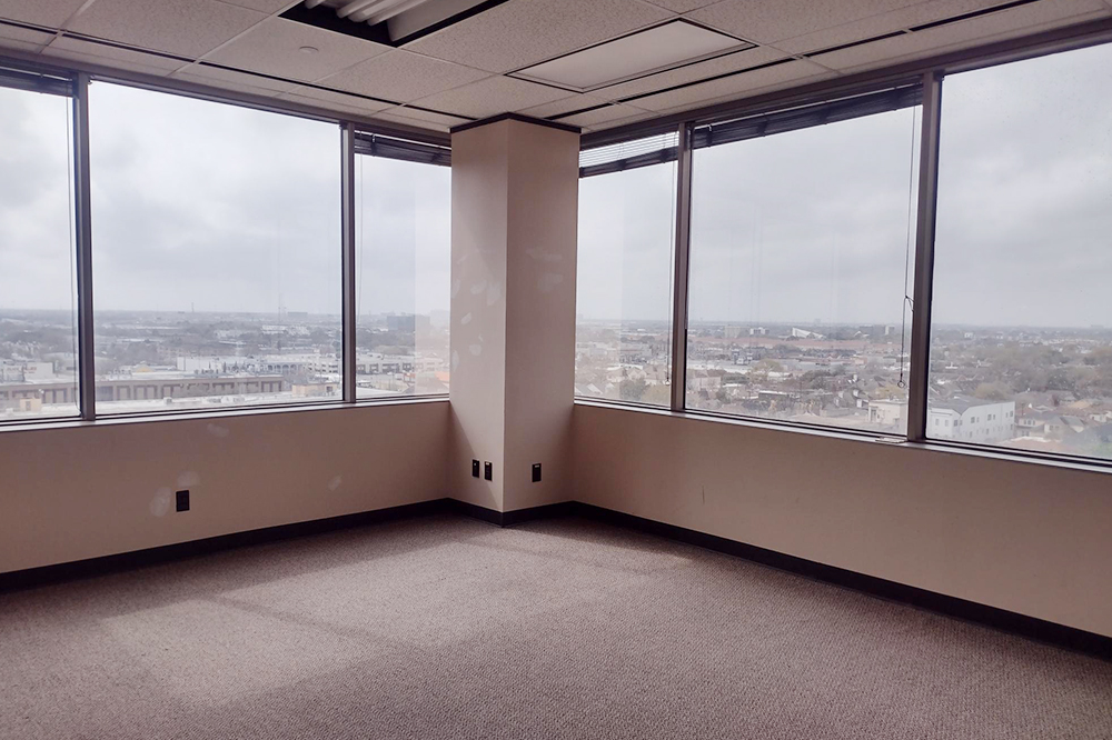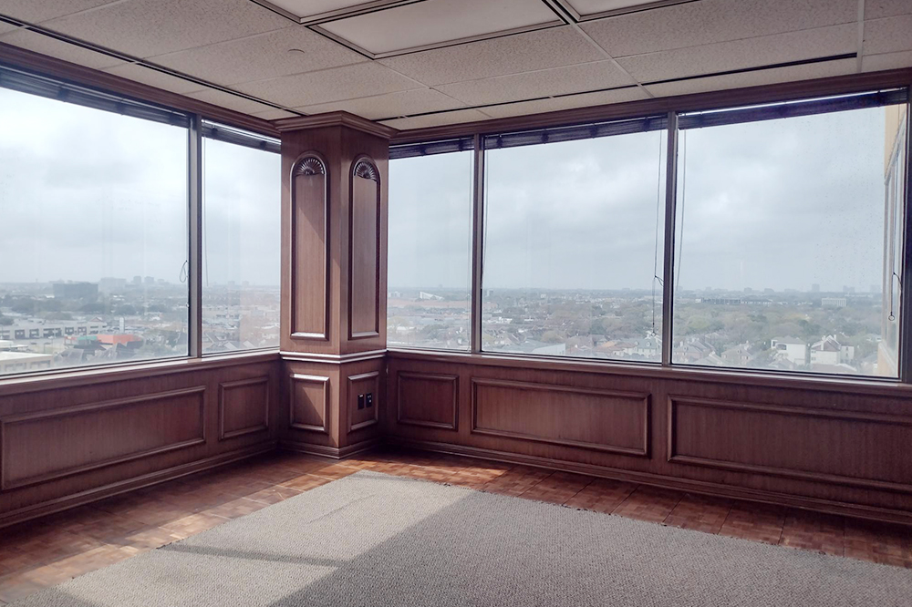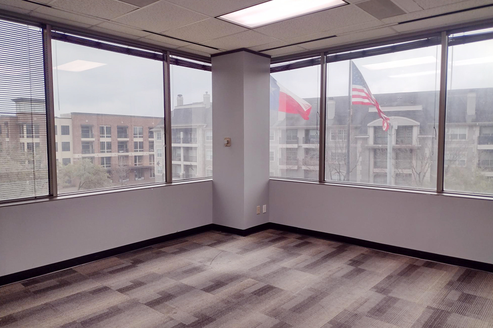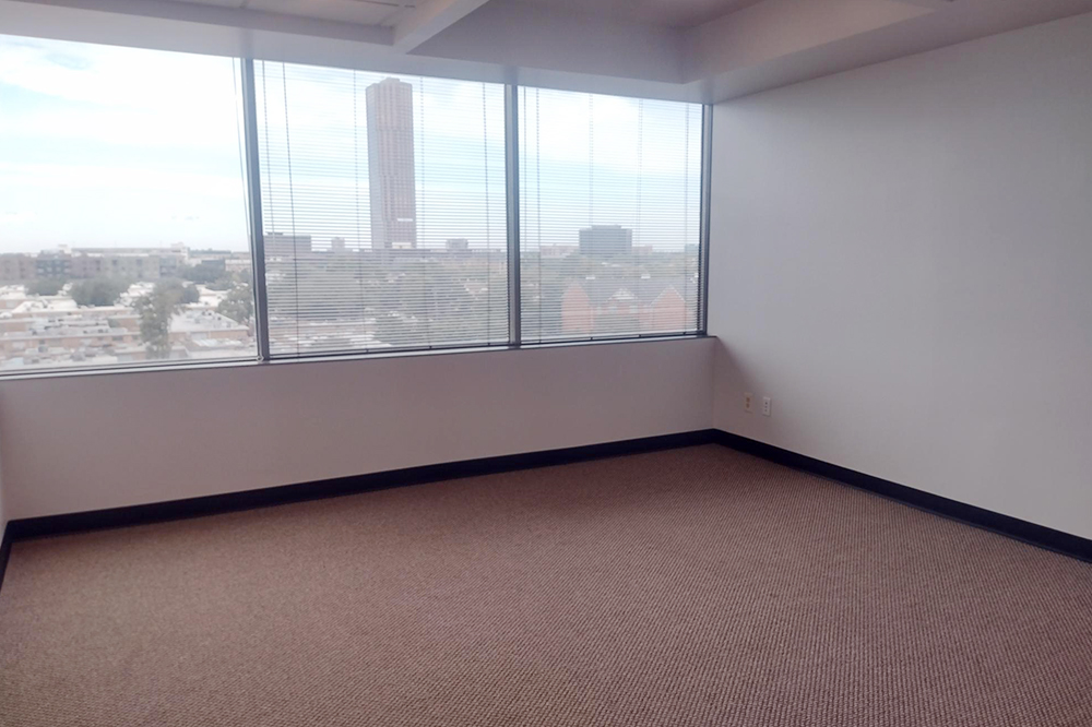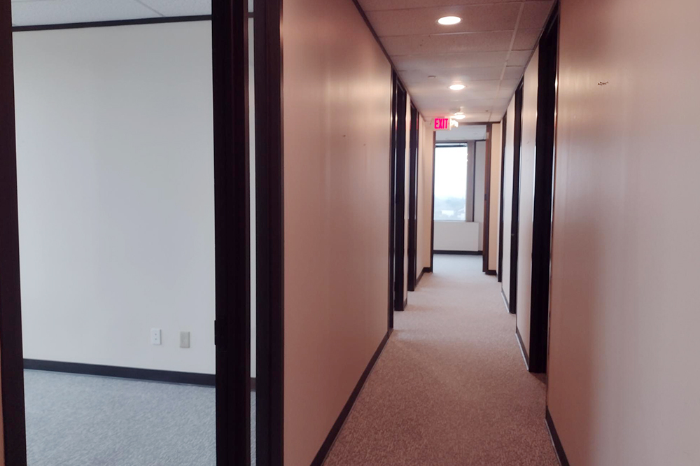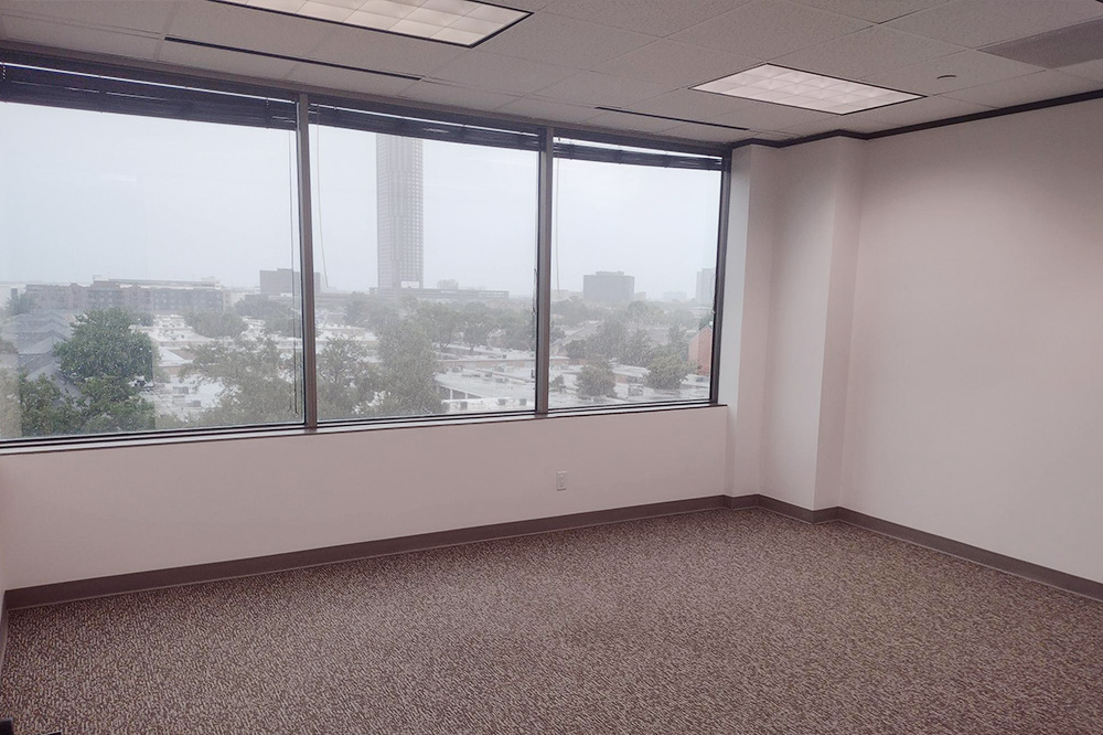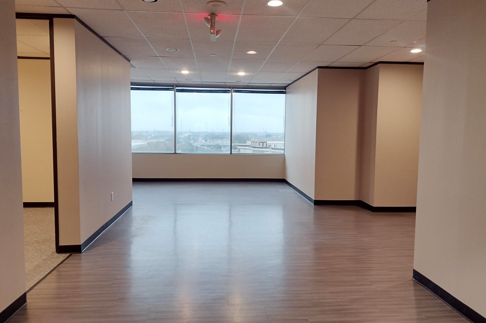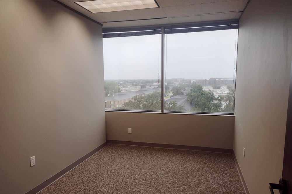 Reception w/ window, 1 corner window office, 3 window offices, large conference room, 1 interior office, & breakroom