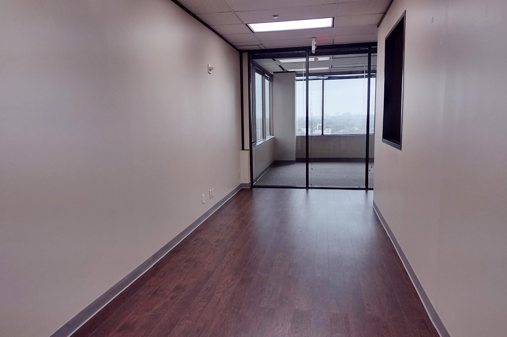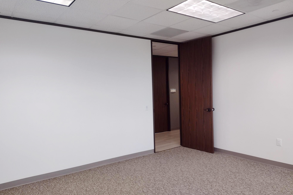 Reception, 2 atrium view offices, 1 Interior Office, and storage closet.