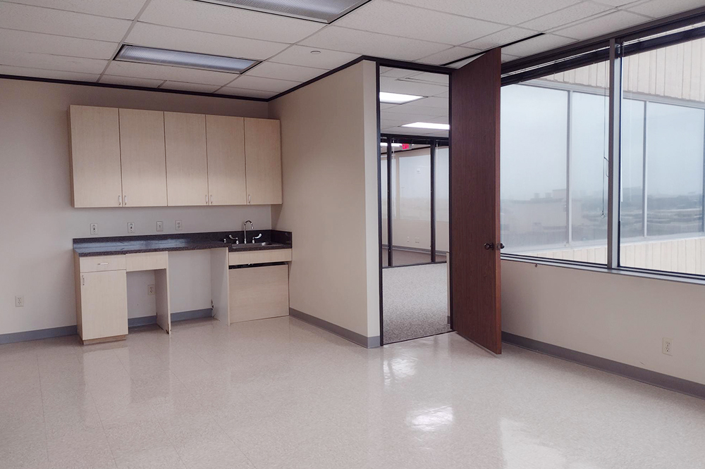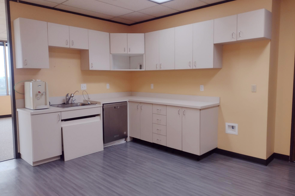 Reception Area, 1 Window Office, 2 Interior Offices, Kitchen, Break Area, Sink
