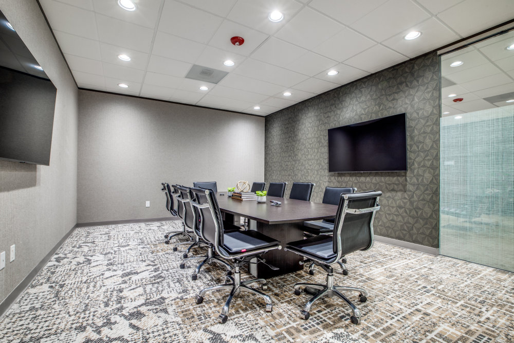 Fully Furnished & Decorated Office. Includes shared waiting areas, conference rooms, huddle rooms, lounge, coffee bar, and WiFi.