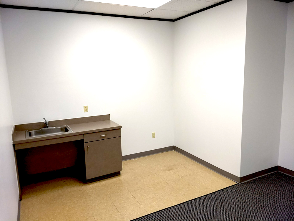 Reception Area, 1 Window Office, 2 Interior Offices, Kitchen, Break Area, Sink
