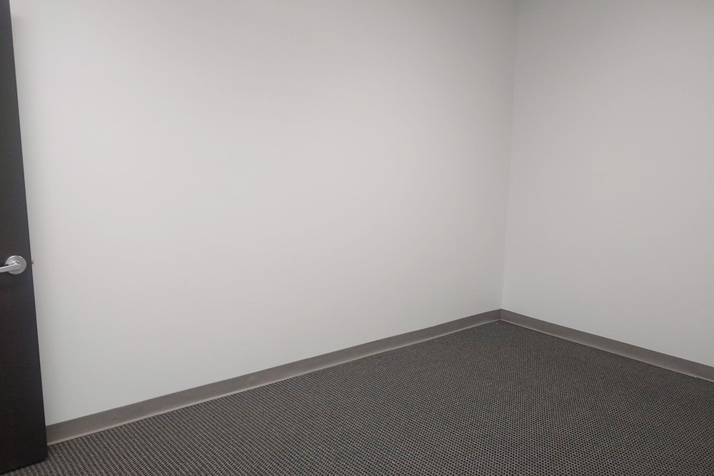 Interior office for 1 with built-in desk. Includes shared waiting areas, conference rooms, huddle rooms, lounge, coffee bar, and WiFi.