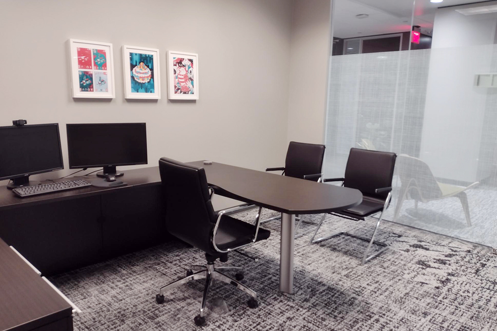 Interior Office with access to shared Boardroom, Conference Room, 4 Huddle Rooms, 3 Lounge Areas, Training Room, Coffee Bar, and free WIFI.