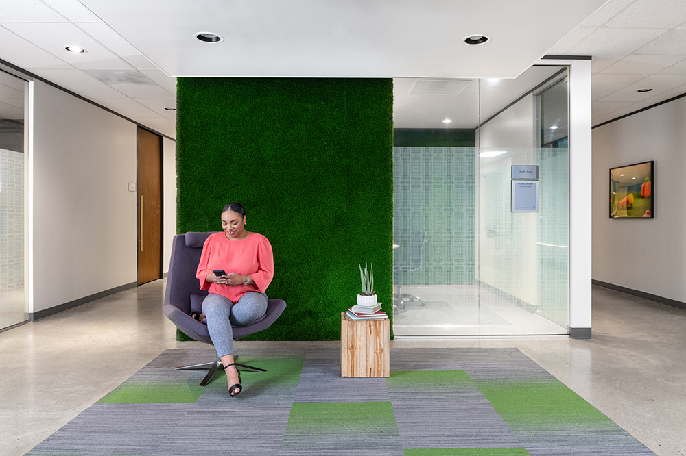 Workstyle Interior Office includes access to shared waiting area, conference rooms, huddle rooms, coffee bar & WiFi.