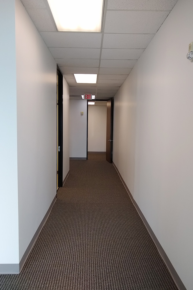 Reception, 2 atrium view offices, 1 Interior Office, and storage closet.
