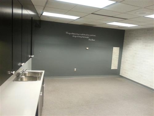 Reception Area, 3 Window Offices, 1 Interior Office, 1 Conference Room, Kitchen, Break Area, Sink, 1 Entrance