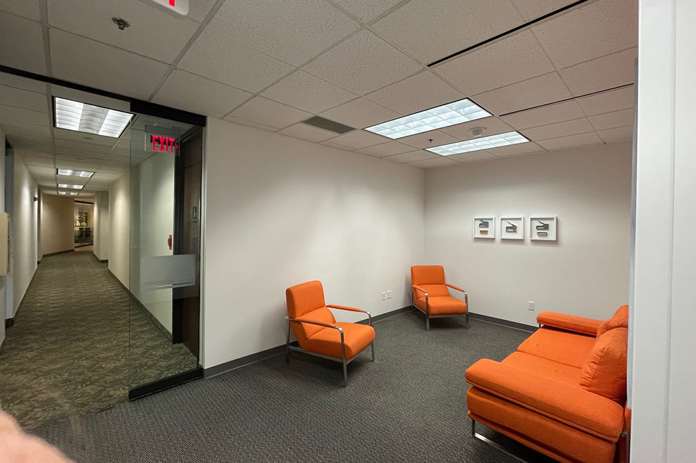 Interior office for 1. Includes shared waiting areas, conference rooms, huddle rooms, lounge, coffee bar, and WiFi.